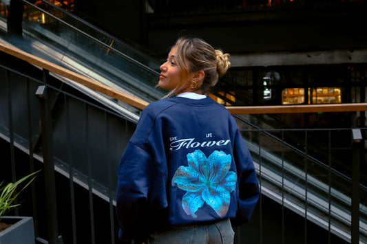 POLERON 80'S (FLOWERS) AZUL SIN GORRO